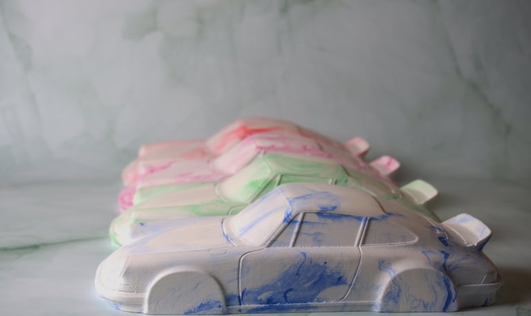 Unsere neueste Sportautovariante mit farbiger Marmorierung ist nicht nur ein ästhetisches Highlight, sondern auch ein einzigartiges Kunstwerk. Jedes Exemplar wird mit viel Sorgfalt und Liebe zum Detail gegossen, sodass jedes Stück ein Unikat darstellt. Die eindrucksvollen Farben, die sich in der Marmorierung entfalten, erzeugen eine dynamische Optik, die das klassische, minimalistische Design in ein aufregendes Kunstobjekt verwandelt.